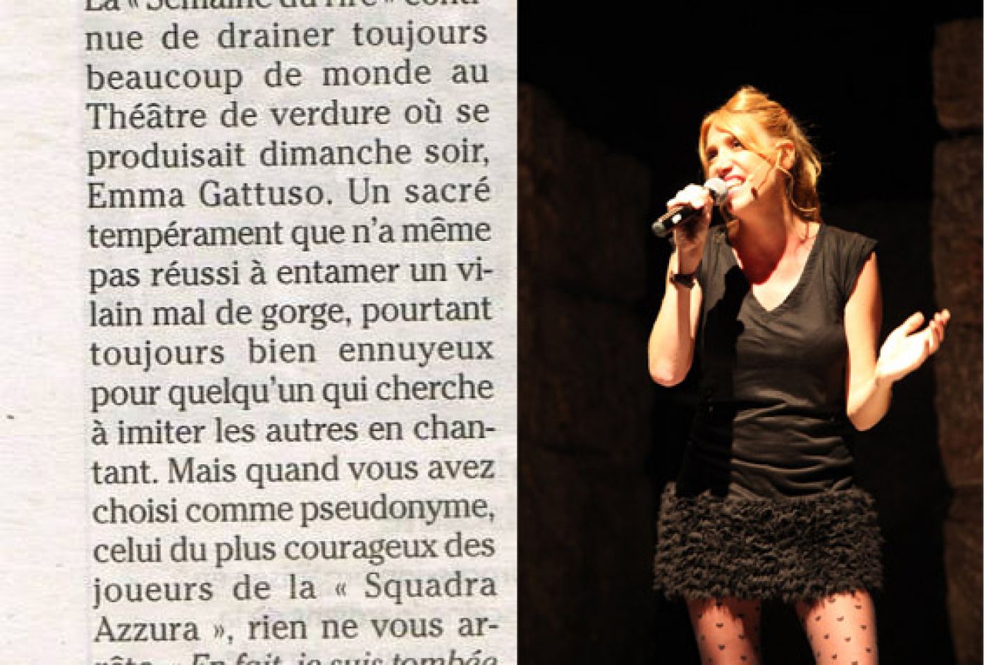 Emma Gattuso dans Var Matin, à l'occasion de la semaine du Rire de Draguignan, où elle a présenté son spectacle devant 400 personnes rassemblées dans le magnifique théâtre antique de la ville.