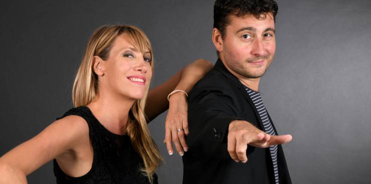 Emma Gattuso et Thibaud Choplin.Invités dans l'émission de David Lantin pour la promotion de leur spectacle "Les ImitaTueurs"