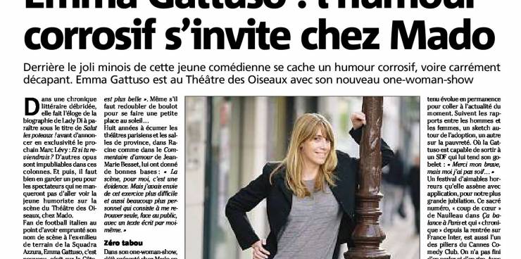 Emma Gattuso dans Nice Matin à l'occasion de sa programmation à Nice au théâtre des Oiseaux, chez Mado la Niçoise !