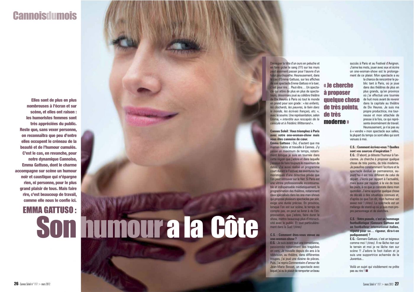 Merci Cannes Soleil pour ce portrait d'Emma Gattuso, et son parcours théâtral. Emma Gattuso est cannoise d'adoption et de coeur depuis de nombreuses années !