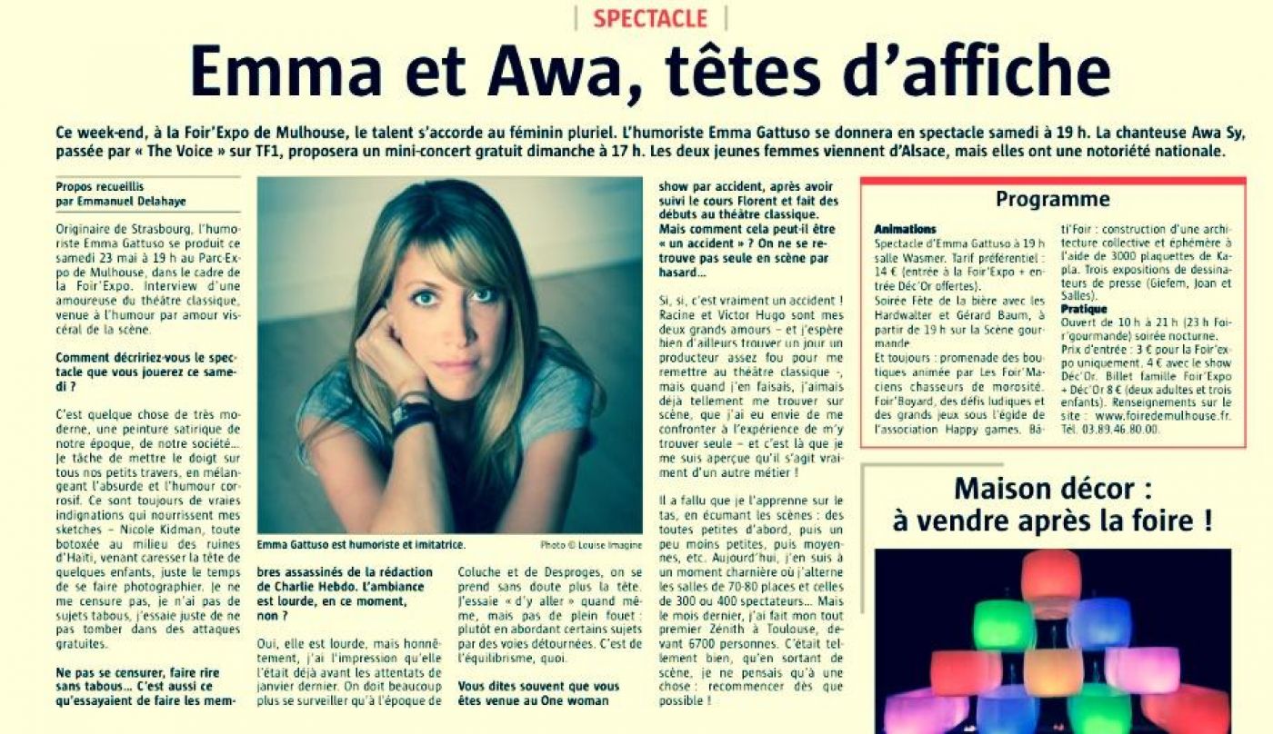 Emma Gattuso dans l'Alsace, à l'occasion de sa représentation exceptionnelle en clôture de la Foire des Expos de Mulhouse.
