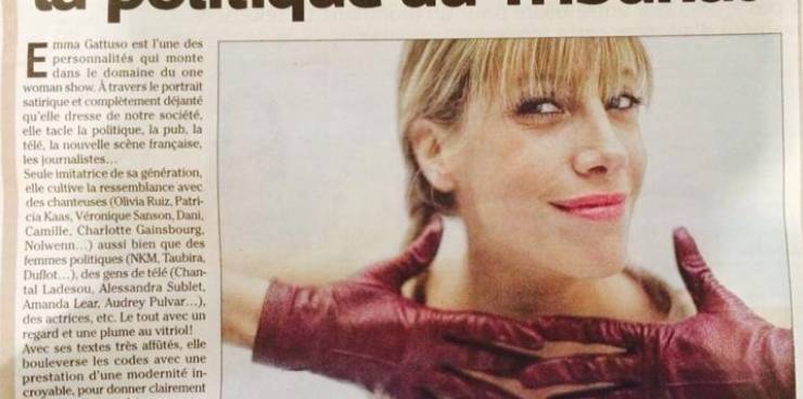 Emma Gattuso dans le Figaro.Merci à Jean-Luc Jeener pour ce premier article dans le Figaro, à l'occasion de la création parisienne de son one woman show EMMA M'A TUER, au Théâtre le Bout (Métro Pigalle)