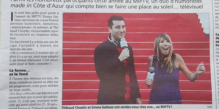 Les ImitaTueurs dans Nice MatinEmma Gattuso et Thibaud Choplin présentaient un nouveau concept de programme court humorisitique au MIP TV de Cannes