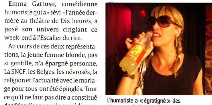 Emma Gattuso dans le Courrier Picard.En spectacle à Albert, au théâtre l'Escalier du Rire pour un week-end.