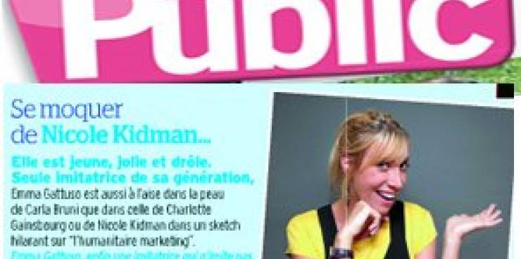 Emma Gattuso dans Public !Un petit article qui fait référence à un sketch phare de son one woman show : Nicole Kidman et "l'humanitaire-marketing" !